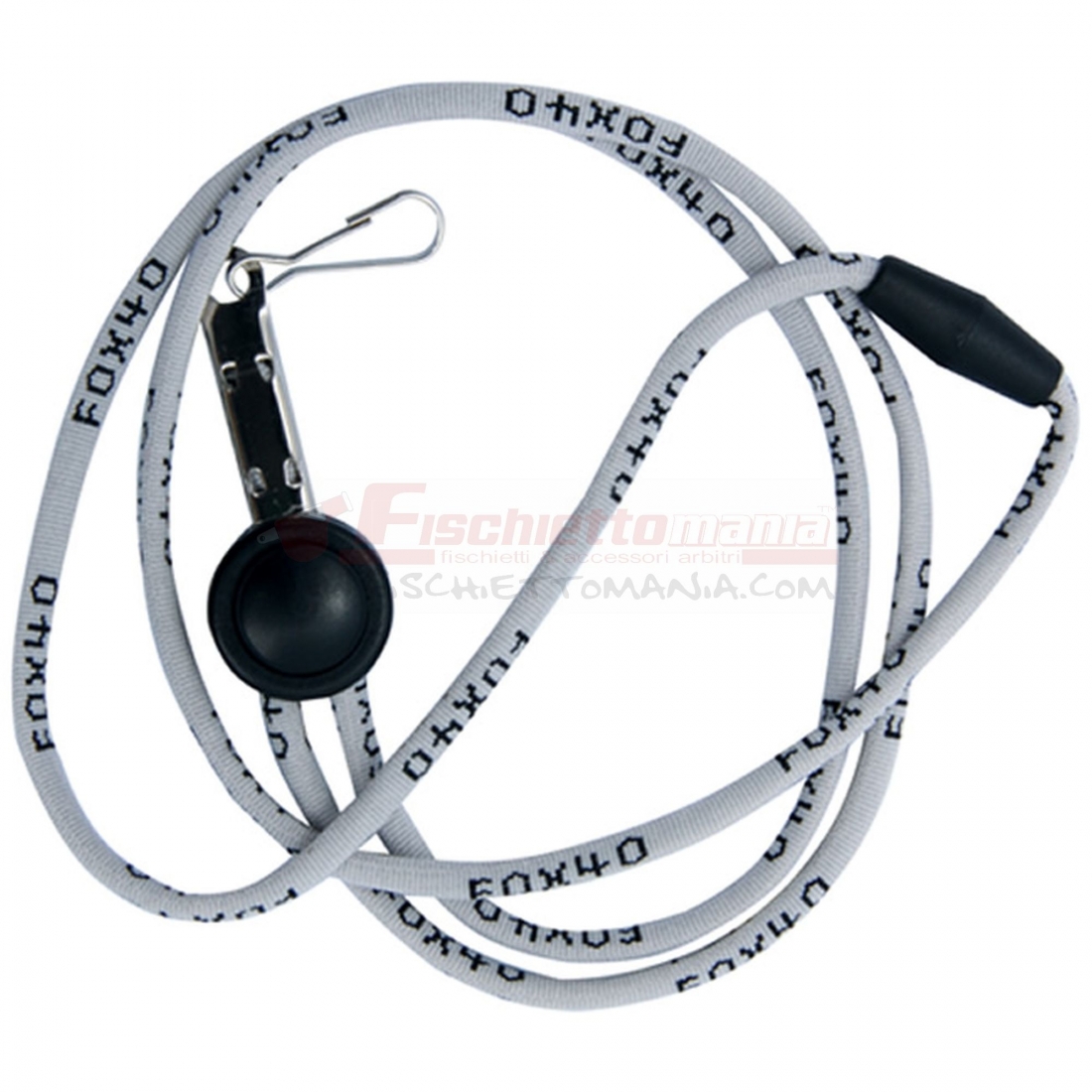 Disponibile in tutti i colori della gamma fischietto FOX 40, è in nylon con aggancio in metallo e clip nera in plastica.