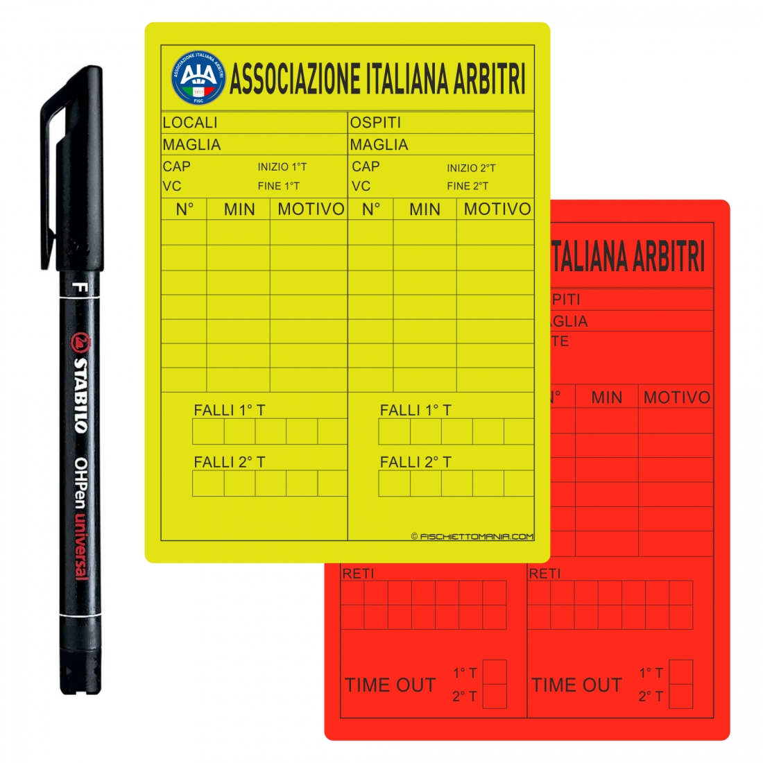 I cartellini riscrivibili 12x9 cm AIA CALCIO A 5, con il logo FIGC e la scritta ASSOCIAZIONE ITALIANA ARBITRI hanno una nuova tabella più resistente agli agenti esterni. Realizzati su cartellini neon 12x9 cm, colori sgargianti e accesi. Avrete a disposizione la qualità dei cartellini più usati al mondo e garantiti da B+D, su di essi vi è applicata una tabella (studiata secondo le esigenze dell'arbitro di calcio). Sui cartellini potrete scrivere utilizzando uno speciale pennarello (incluso con i cartellini) che resiste a sfregamento e ai fattori esterni e vi permetterà dunque di mantenere tutti i dati della partita riportati sui cartellini e cancellarli infine con un batuffolo imbevuto di alcool etilico.