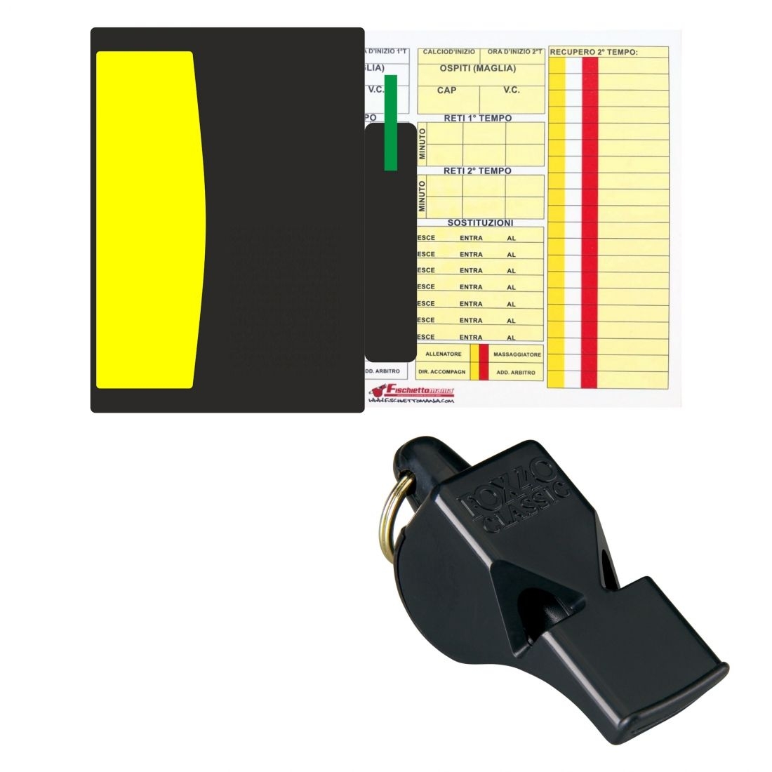 Offerta per un set composto da: 1 TACCUINO GARA (che include cartellini giallo e rosso fluo, matita, cartoncino gara) + 1 FISCHIETTO FOX 40 CLASSIC (colorazioni assortite). L'offerta include la personalizzazione (qualora richiesta nelle note) del taccuino con il logo della vostra Sezione o Lega.